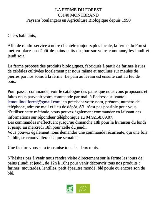 Si vous souhaitez que votre activité commerciale ou votre entreprise soit répertoriée sur cette page, merci de transmettre les informations utiles (objet, coordonnées, horaires, photos ou illustrations…) par messagerie à la mairie.